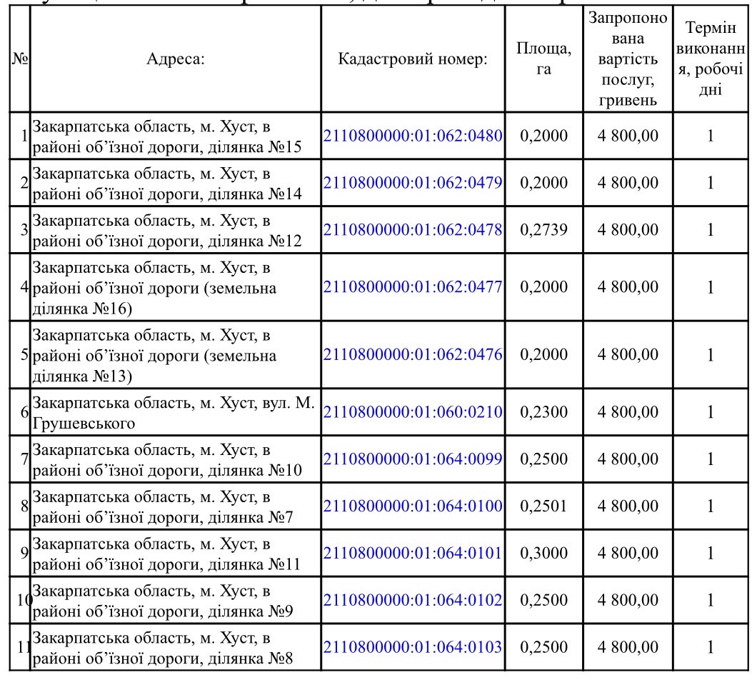 Інформація про результати конкурсу по відбору суб’єкта оціночної діяльності для проведення експертної грошової оцінки земельних ділянок територіальної громади міста Хуст